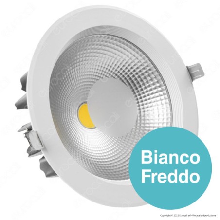 Faretto LED Downlight V-Tac VT-26301 rotondo da 30W con tecnologia LED COB e molle da incasso incorporate. Driver esterno incluso.